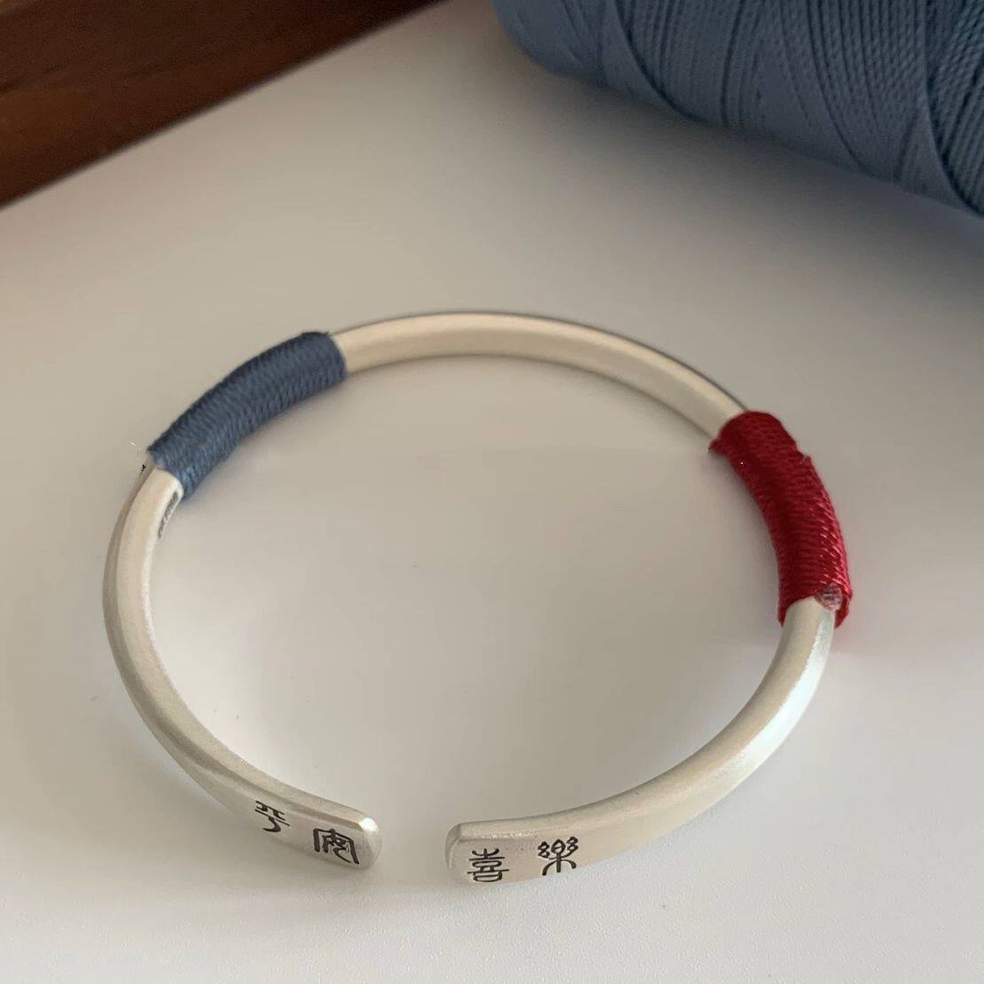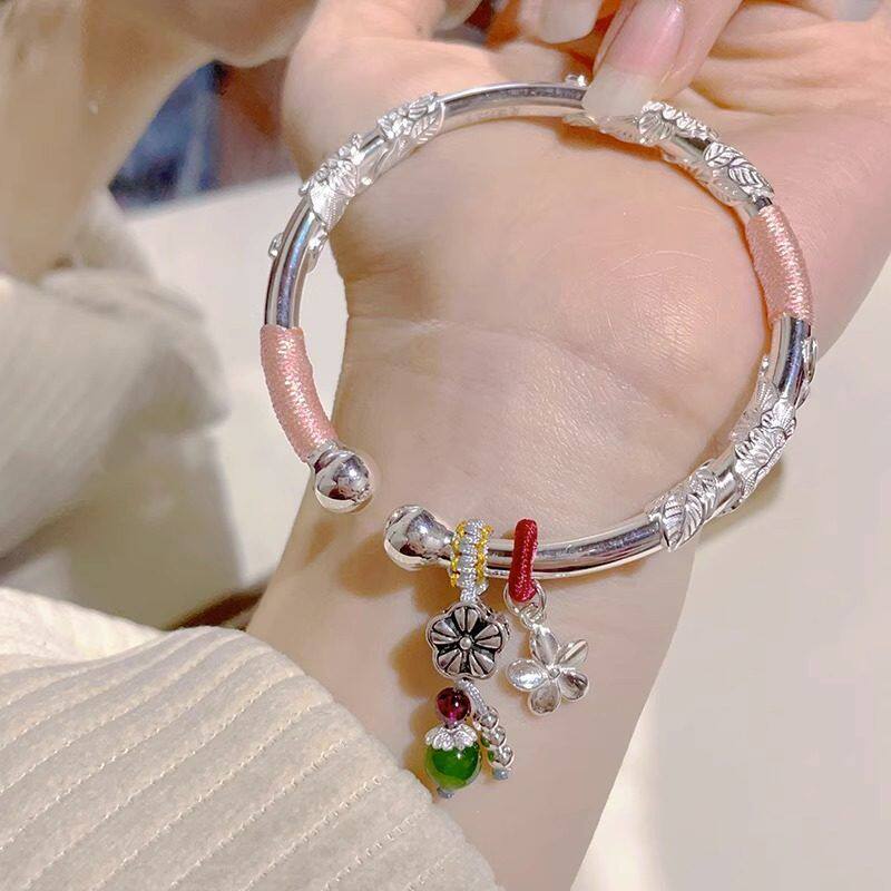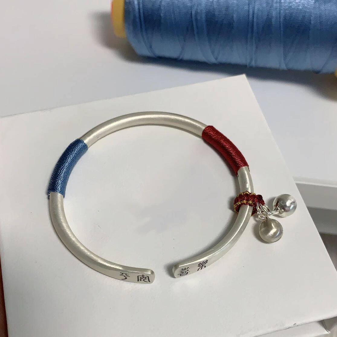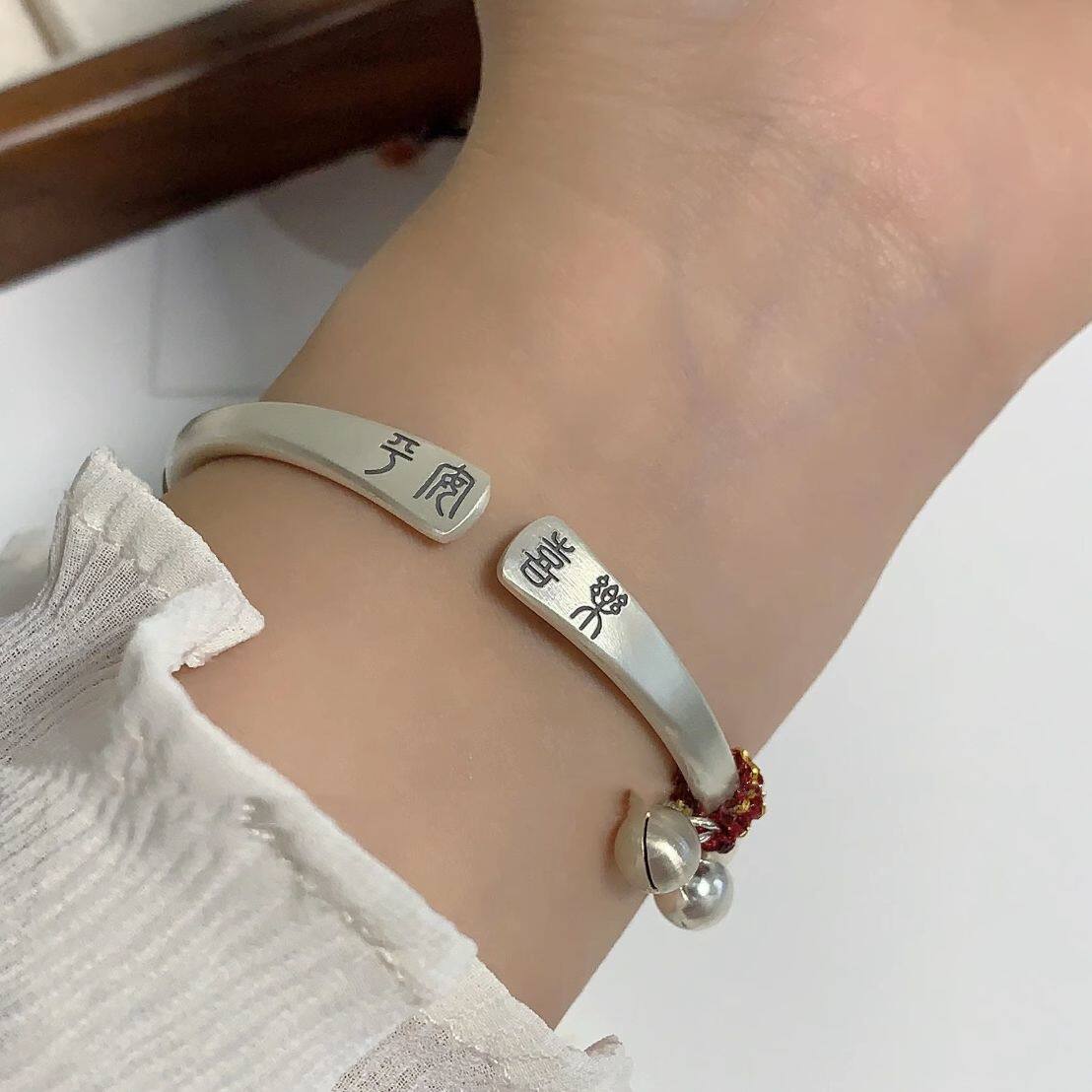【幂琳】平安喜乐银手镯女生纯银实心9999足银手镯子古法生日礼物