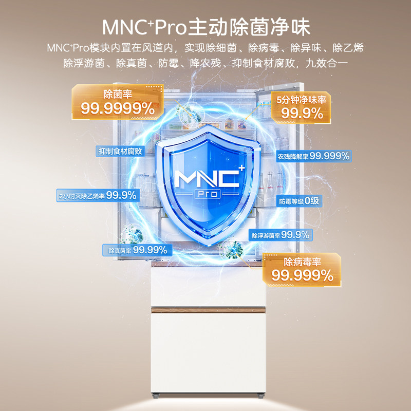 【70cm宽】美菱小确杏502L双系统零嵌法式多门四门家用电冰箱官方