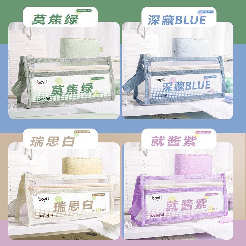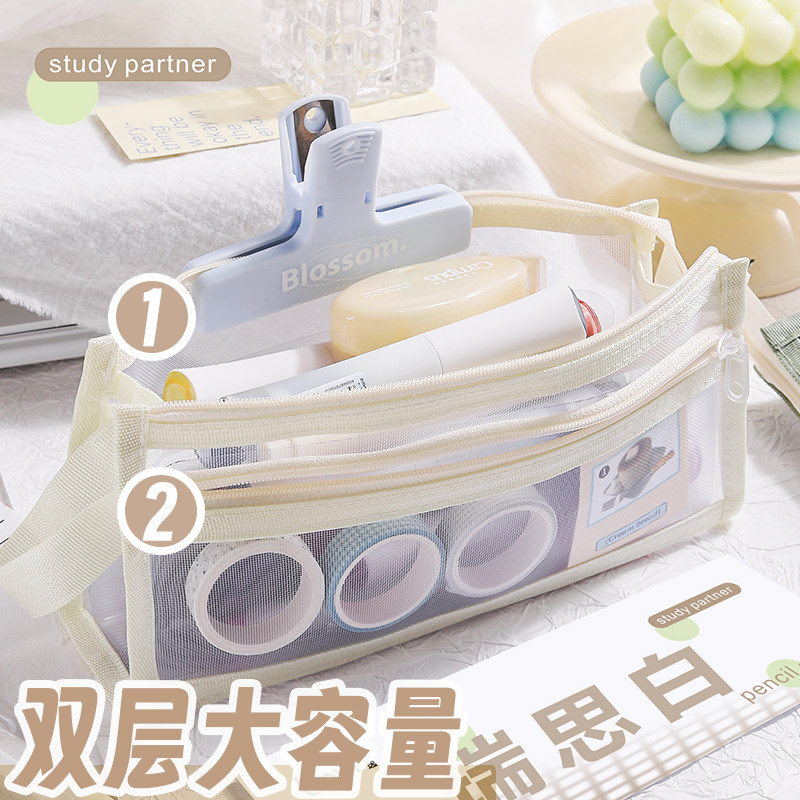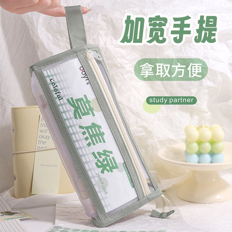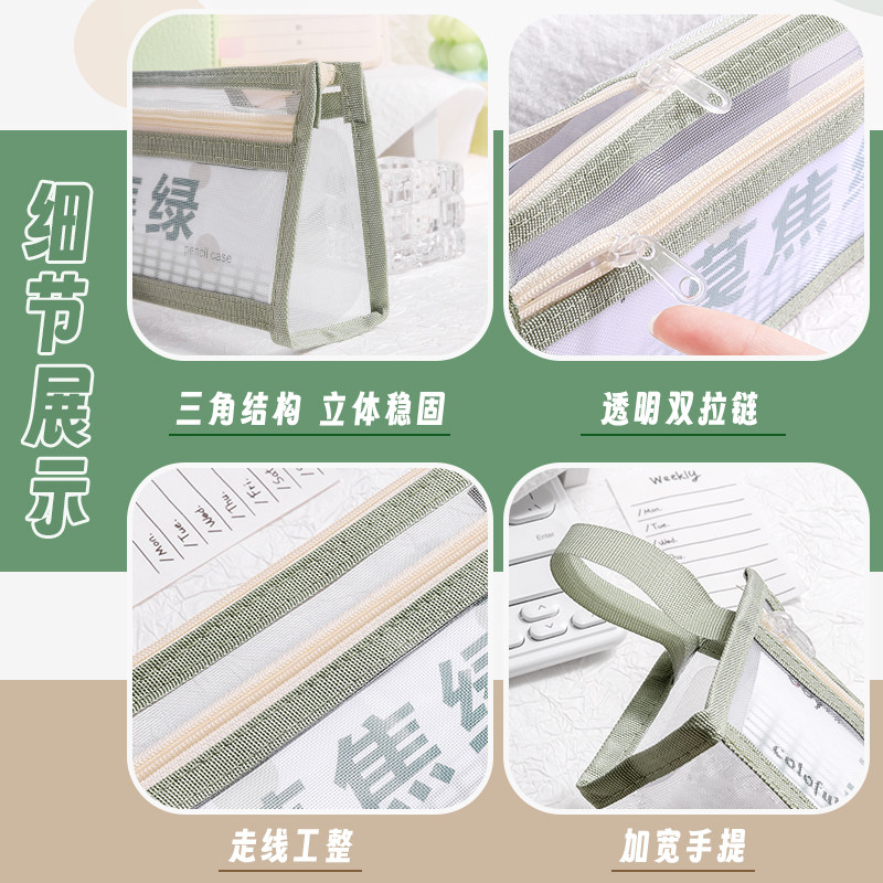 三角网纱笔袋大容量学生文具袋透明高颜值铅笔袋考试专用中高考场学习用品收纳袋简约初中生立体便携文具盒