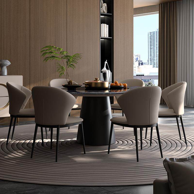 微晶石圆餐桌轻奢别墅奢石圆形内嵌式转盘餐桌椅组合圆桌暖菜转盘