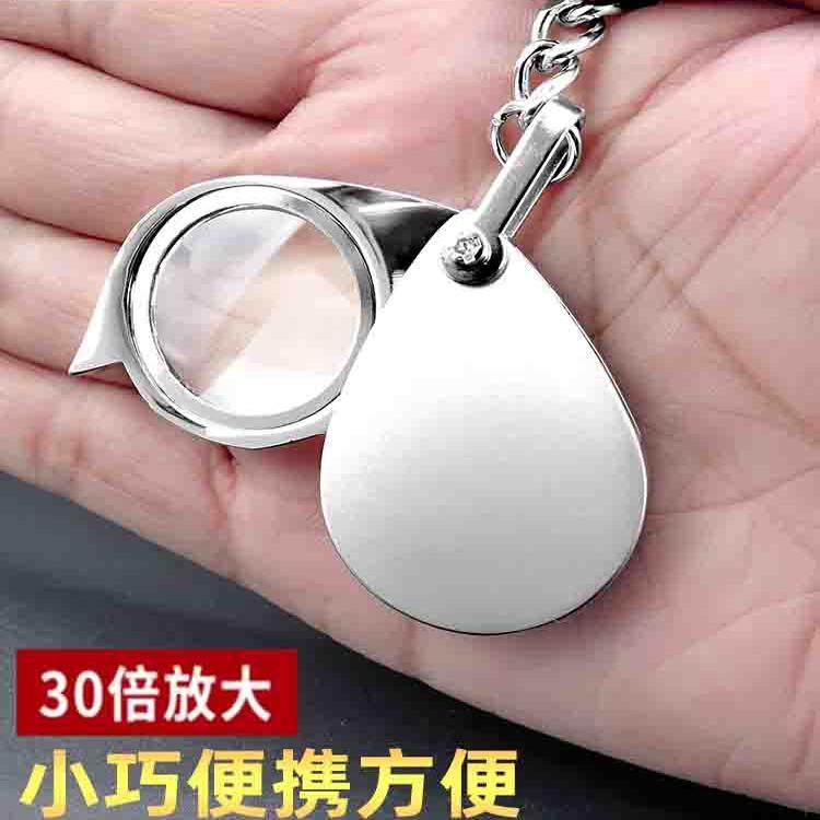 湘奕折叠钥匙扣30手持放大镜20高清正品老人专用阅读便携式儿童科学高倍60鉴定高倍维修非带灯50古董钱币1000