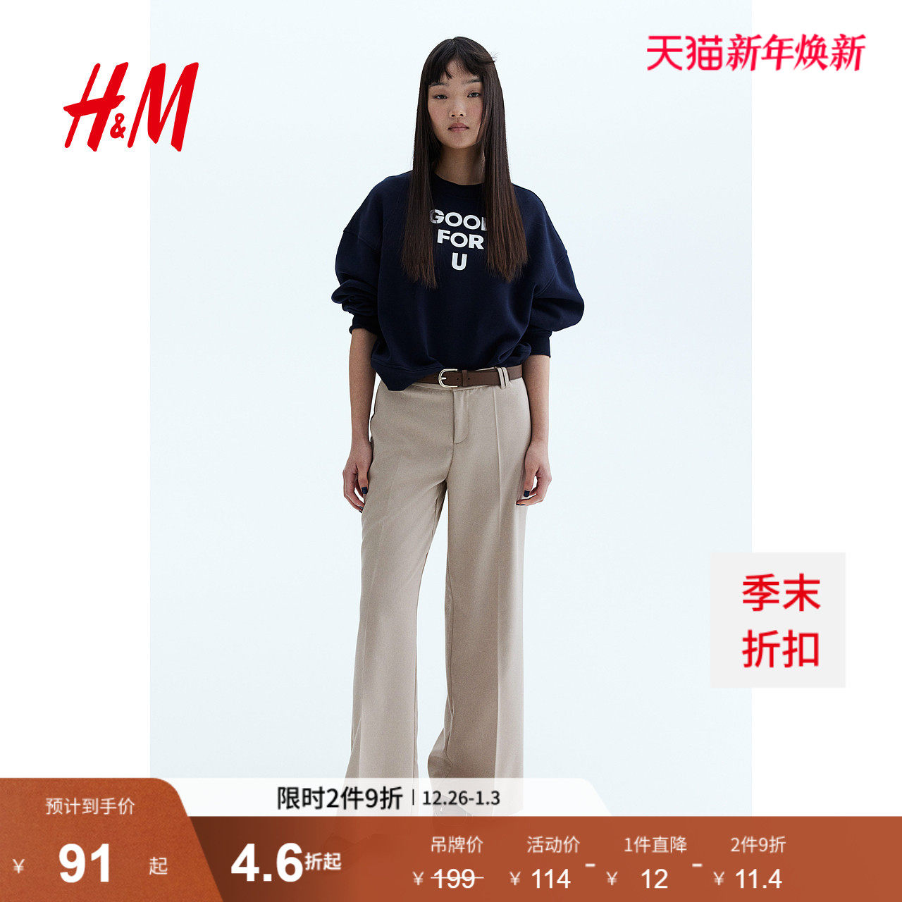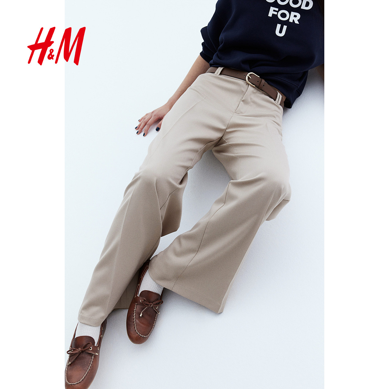 HM2025冬季新款女装时尚休闲百搭阔腿西裤1230818
