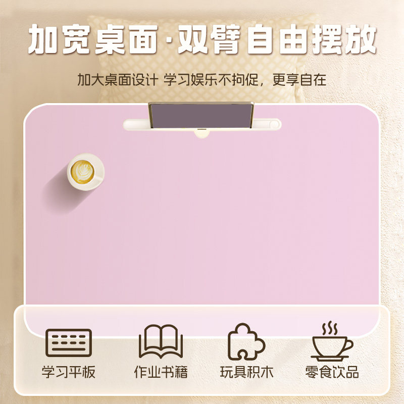 纯色少女粉床上折叠小桌子简约儿童学习写字阅读小桌板家用卧室学生宿舍电脑桌飘窗便携桌吃饭办公手账平板桌