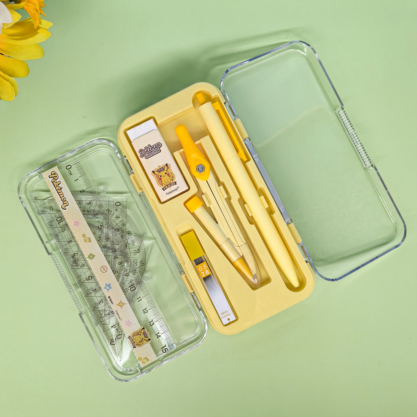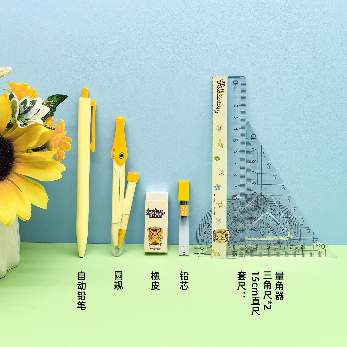 晨光宝可梦尺规套装圆规尺子套装初中生专用套尺圆规直尺三角尺量角器皮卡丘套装学生尺子圆规小学生专用文具