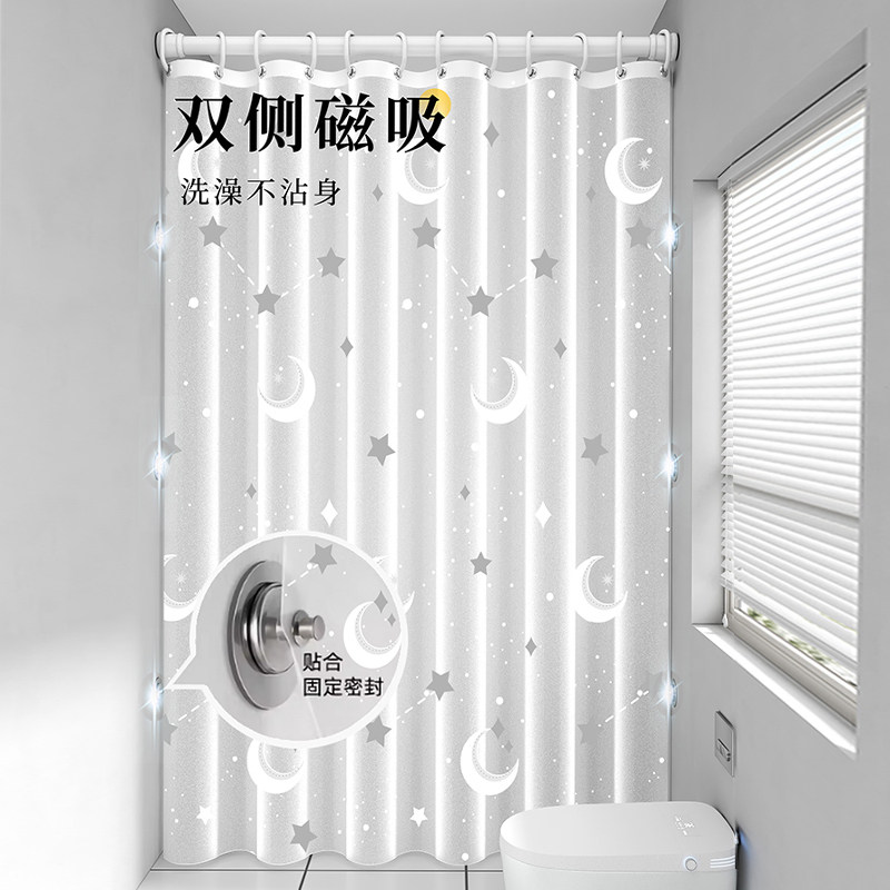 浴室防水防霉浴帘卫生间免打孔高档隔断挂帘子洗澡遮挡帘窗帘磁吸