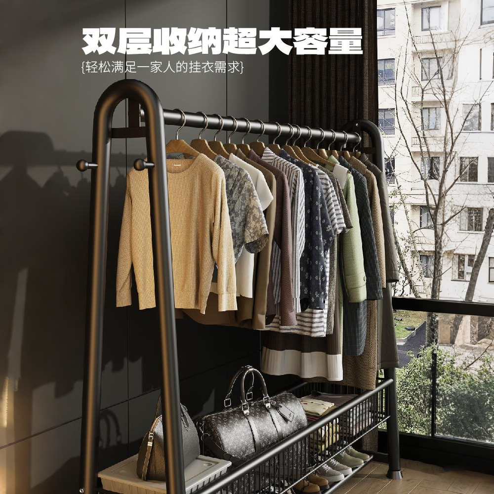 简易衣帽架可移动晾衣架落地室内房间挂衣架子家用卧室衣服收纳架