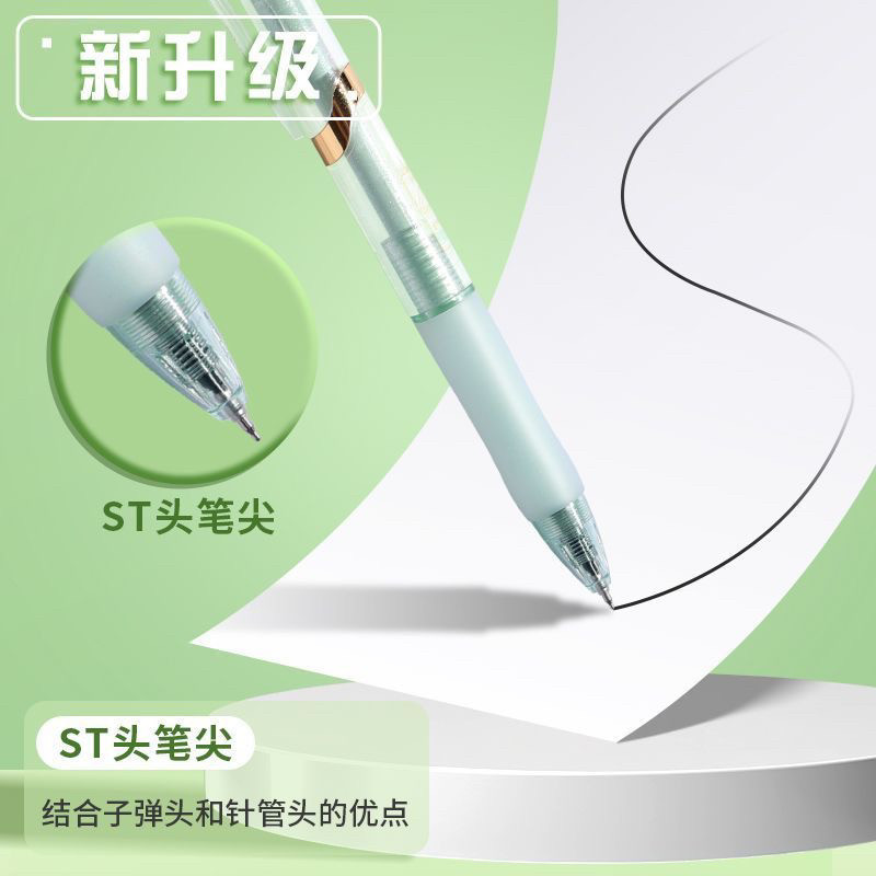 ST刷题笔高颜值按动中性笔圆珠笔黑色水笔小学生专用考试0.5速干碳素笔水性黑笔按压式做笔记签字笔非按斤卖