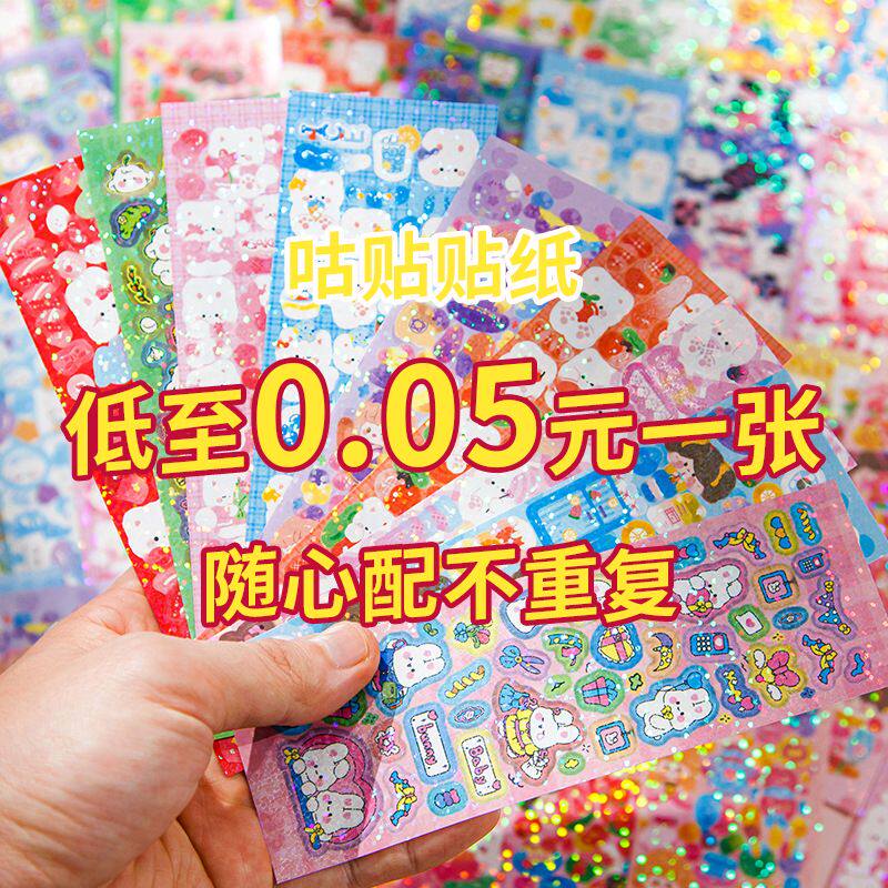 镭射咕卡贴纸500张便宜女孩儿童贴画纸手帐随心配古卡大套装diy