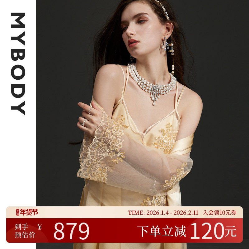 MYBODY商场同款真丝桑蚕丝睡衣套装女蕾丝性感轻奢家居服吊带睡裙