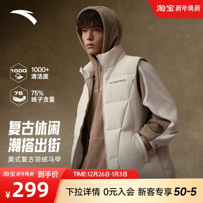 安踏美式复古羽绒服马甲男2025冬季新款时尚休闲防风立领棉服背心