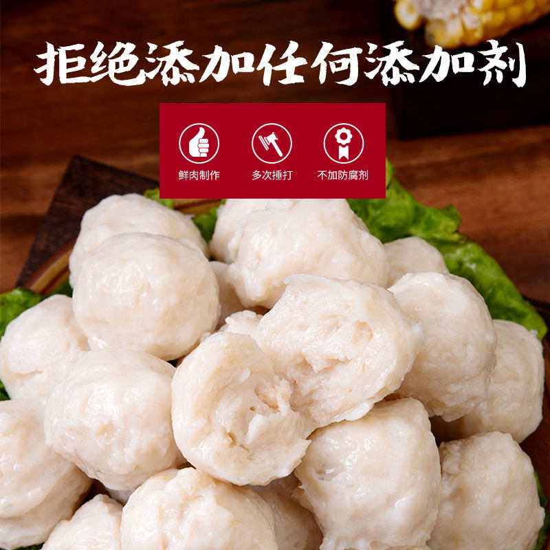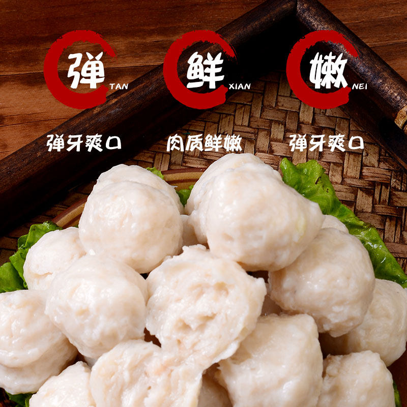 鱼丸潮汕手打墨鱼丸墨斗丸花枝丸2斤装1000g手工手作火锅丸子食材