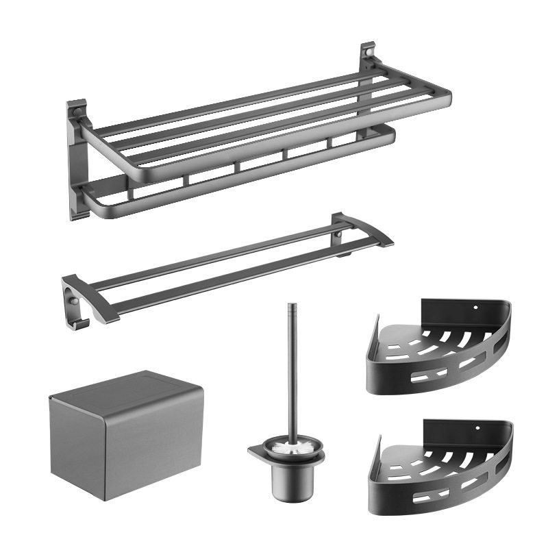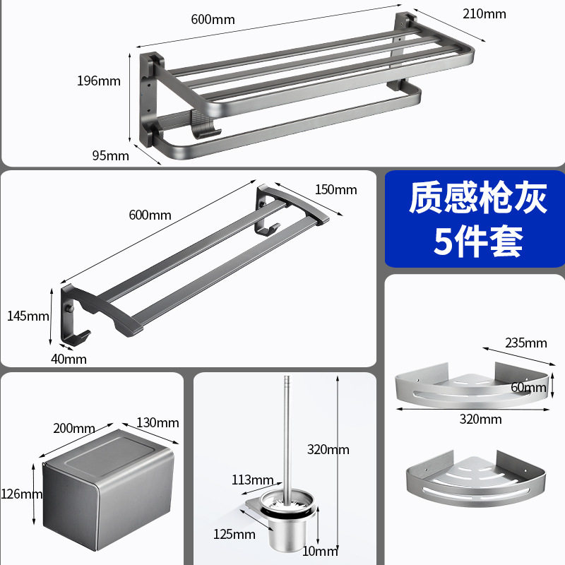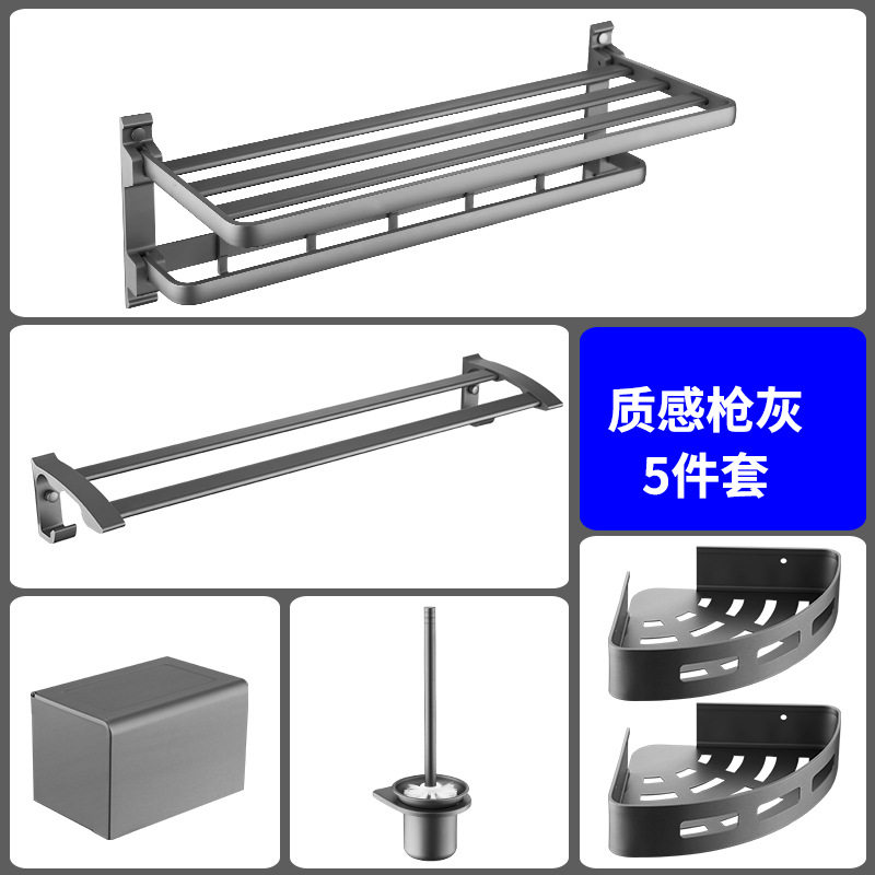 浴室卫浴挂件套装浴巾五金挂架卫生间毛巾置物架厕所五件套免打孔