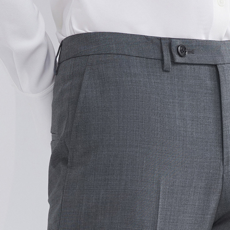 夏莫卡斜门襟灰色西装裤女秋冬后松紧显瘦弧形裤绵羊毛阔腿裤6855