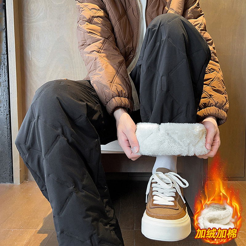 加绒加厚羽绒棉裤男士冬季保暖羊羔绒裤子宽松冬天运动休闲裤防风