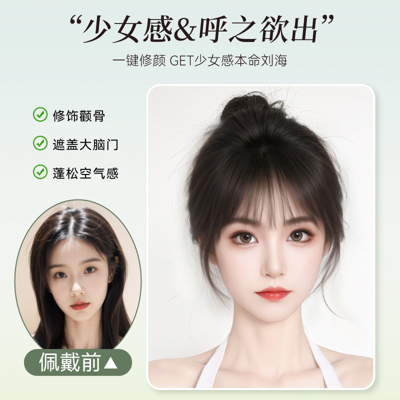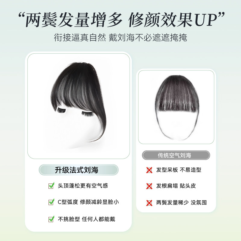 法式空气刘海假发女片头顶全真发自然前额假刘海无痕轻薄款齐刘海