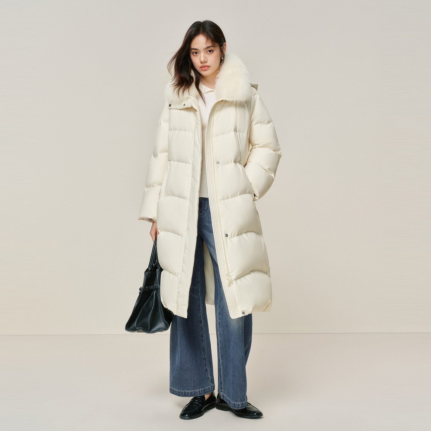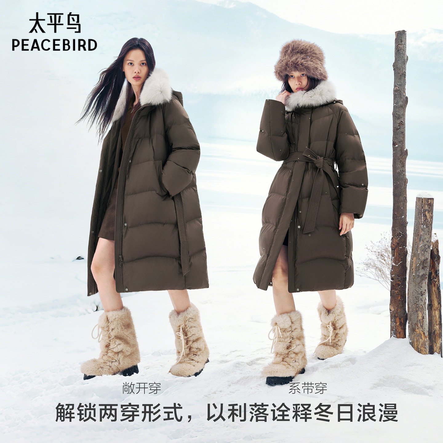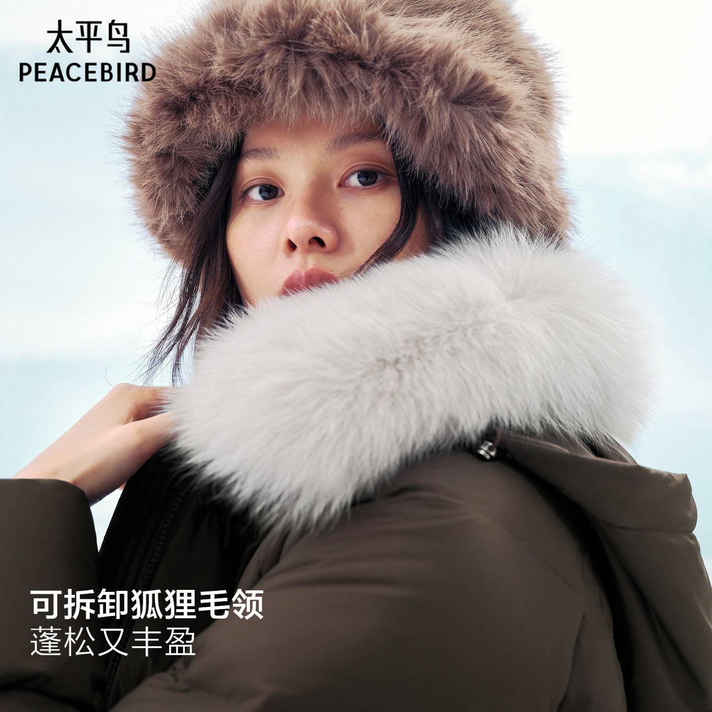 【商场同款】太平鸟狐狸毛领长款棕色羽绒服女御寒保暖A1ACF4502