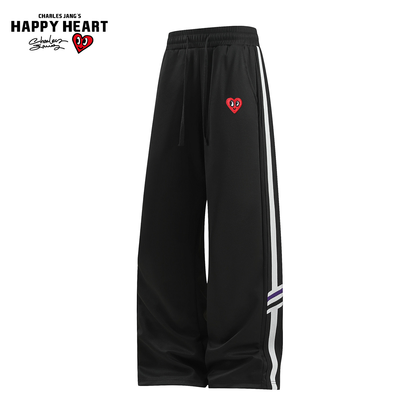 查尔斯桃心新款休闲裤男春秋季爱心刺绣撞色条纹直筒阔腿长裤子
