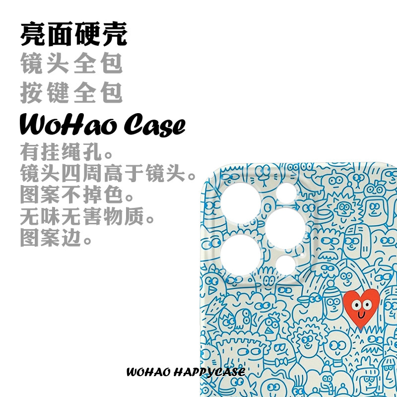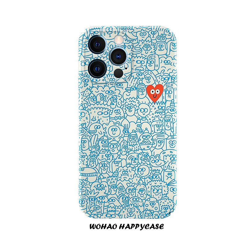 日韩蓝色涂鸦适用于苹果16e手机壳14pro创意iPhone13港风15高级12艺术磨砂华为mate60pro/P70菲林壳防摔小米