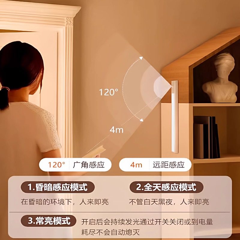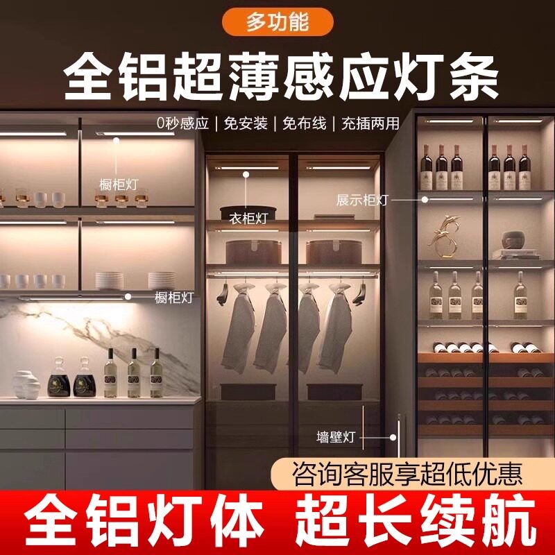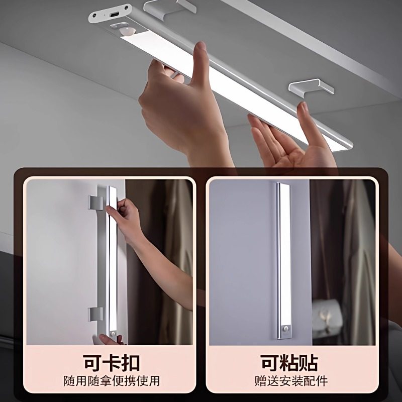 人体感应LED灯带充电式无线磁吸自粘鞋柜灯条夜间玄关过道展示柜