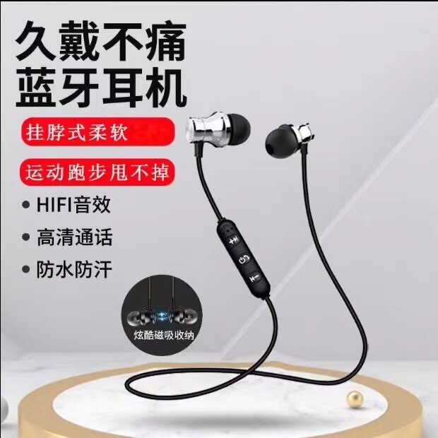 新款运动蓝牙耳机磁吸便携入耳挂脖式跑步立体声磁吸手机电脑通用