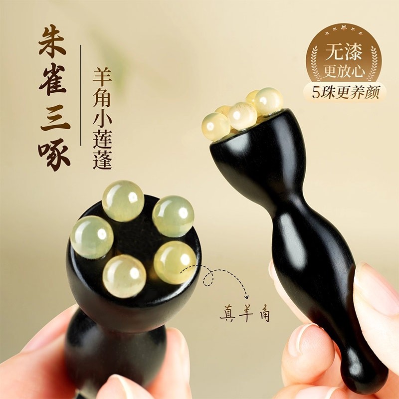 檀木朱雀三啄工具小莲蓬眼部按摩棒脸部点穴位面部美容拨筋棒羊角