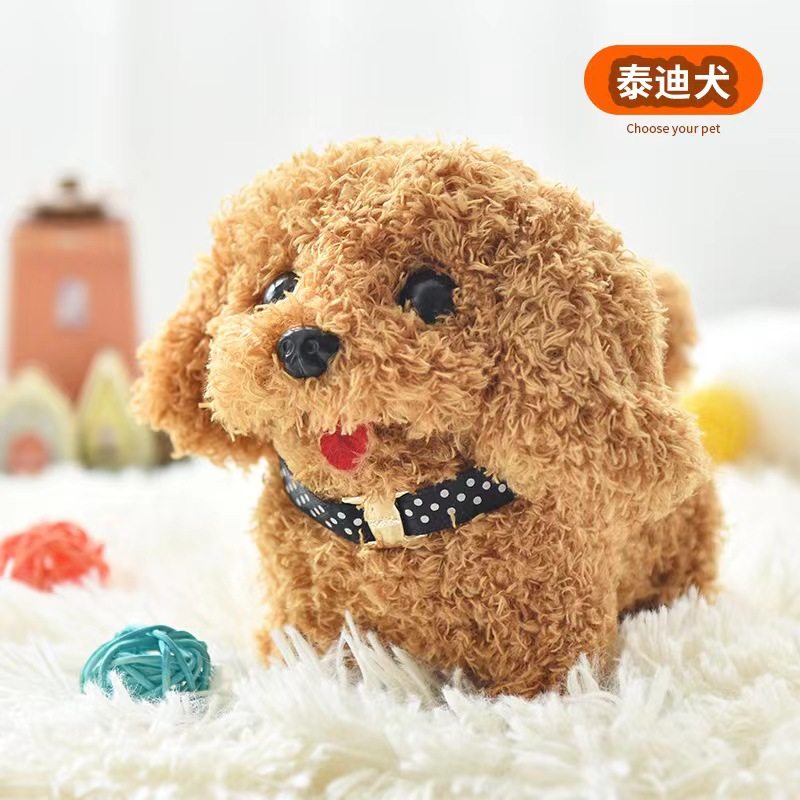 毛绒狗狗走路会叫摇尾巴小宠物狗发声说话玩偶小狗泰迪可充电模型