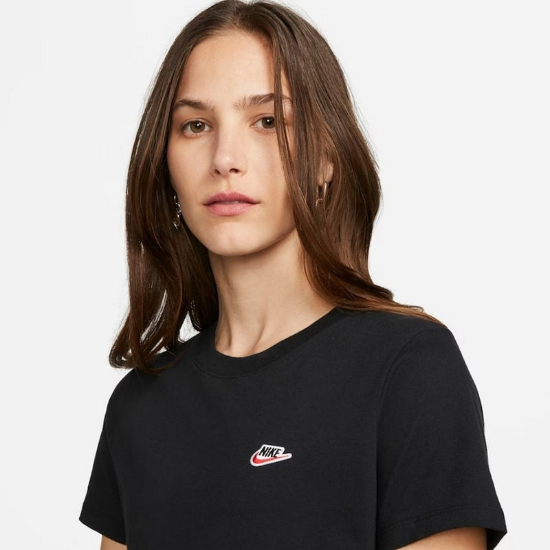 NIKE耐克短袖女夏新款透气圆领运动休闲刺绣黑色棉T恤DZ4681-010