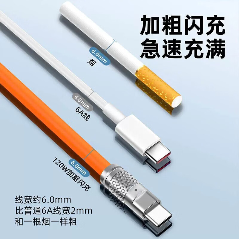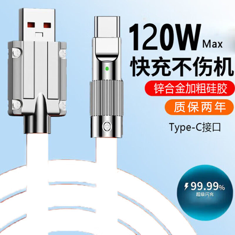 昊微 Type-c锌合金数据线120W快充6A闪充tpyec适用华为魅族vivoS17Pro荣耀60/50小米Civi3/12X手机加长充电线