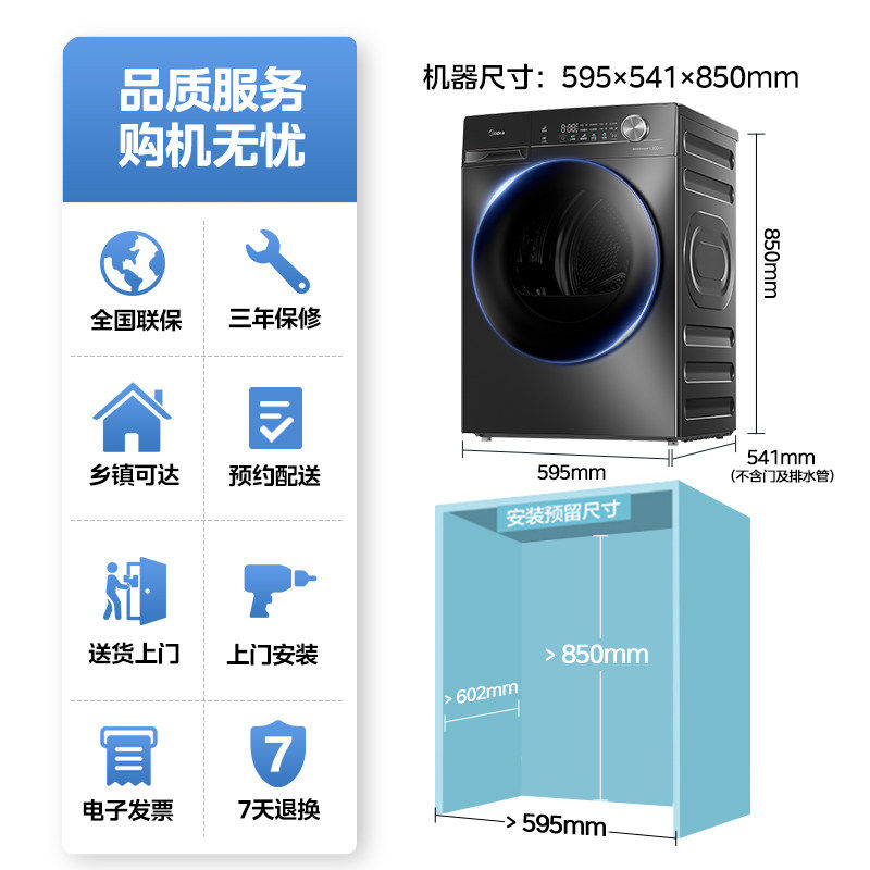 【变频热泵】美的10KG烘干机家用全自动除菌除螨滚筒干衣机VH36T