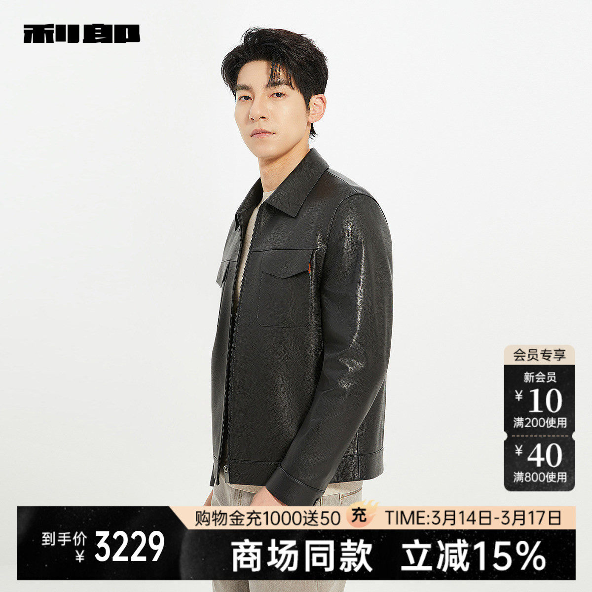 【商场同款】利郎官方绵羊头层皮革真皮皮衣男春秋外套25QZP1031Y
