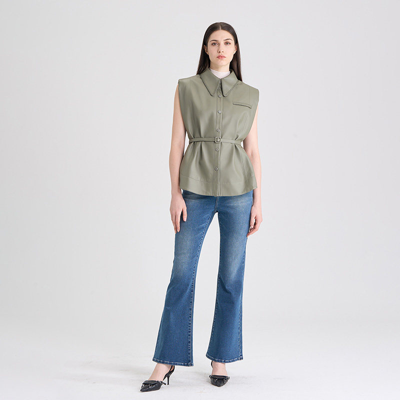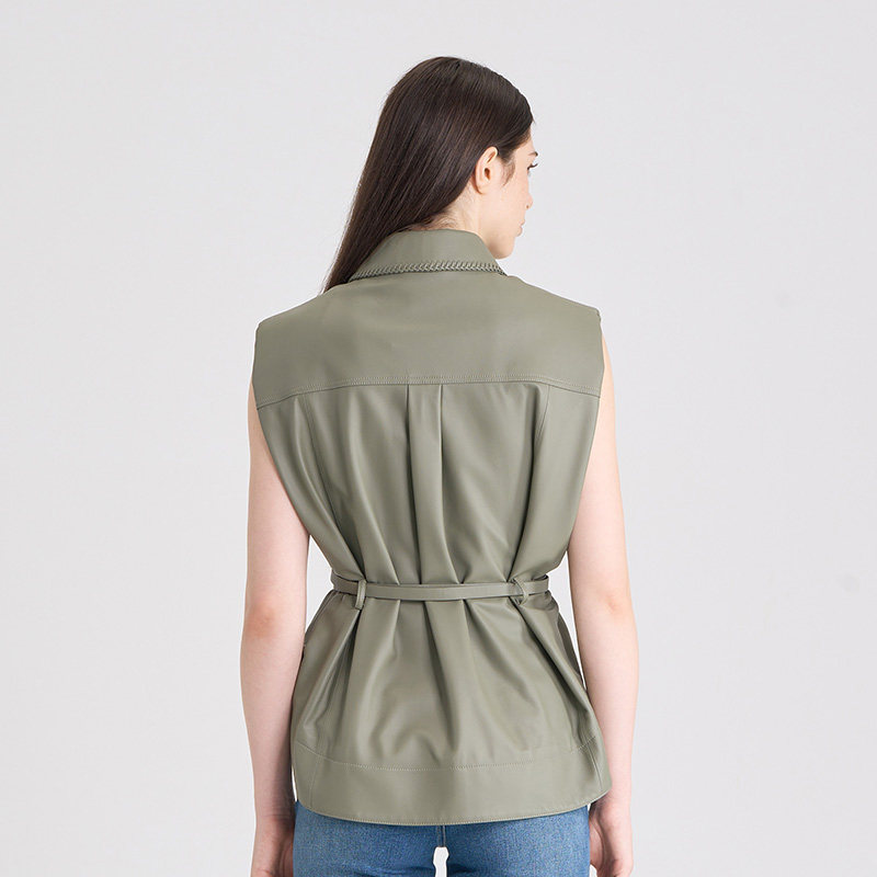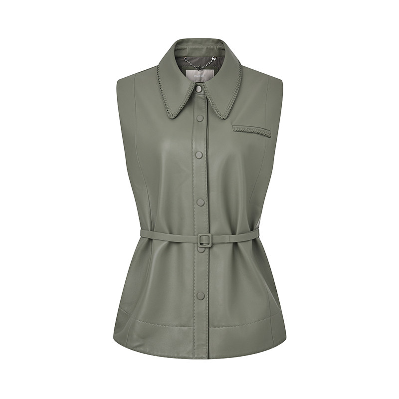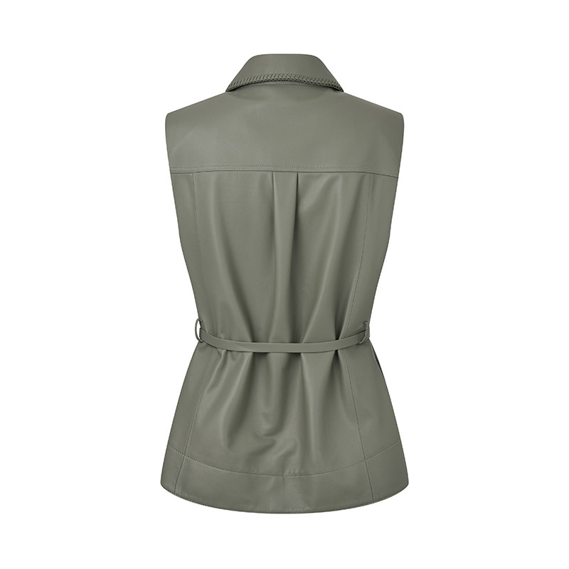 RARE威雅女装 秋冬款牛油果绿宽松马甲皮衣外套RR2246120501