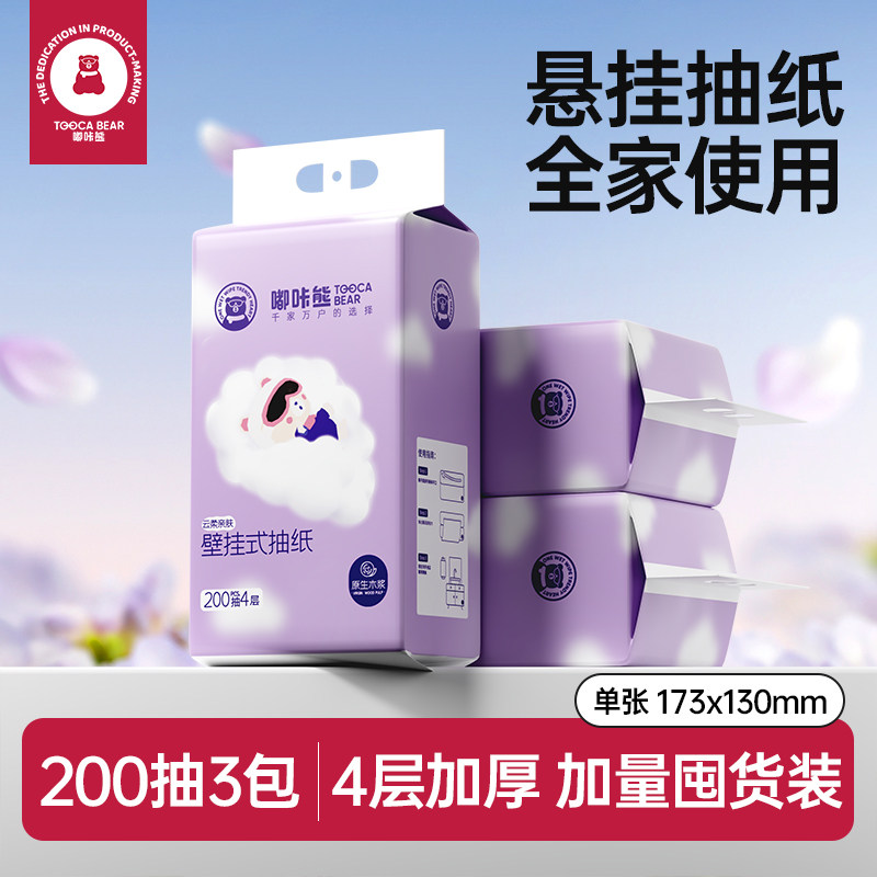 嘟咔熊大包悬挂式抽纸加厚家用实惠装3提面巾香味母婴云柔抽取式