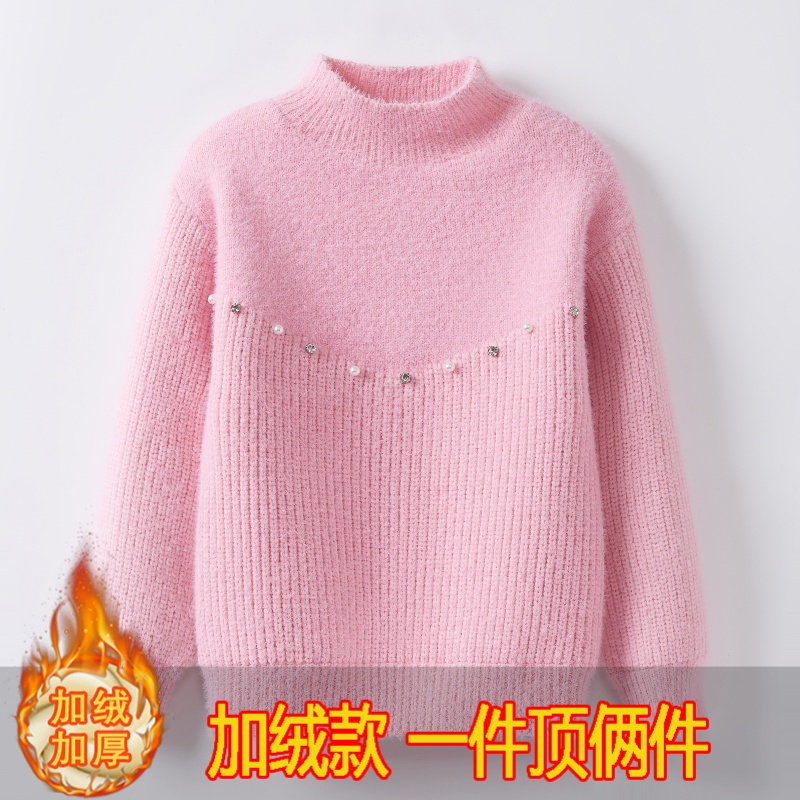 女童毛衣秋冬新款中大童仿貂绒针织打底衫儿童加绒加厚毛线衣童装