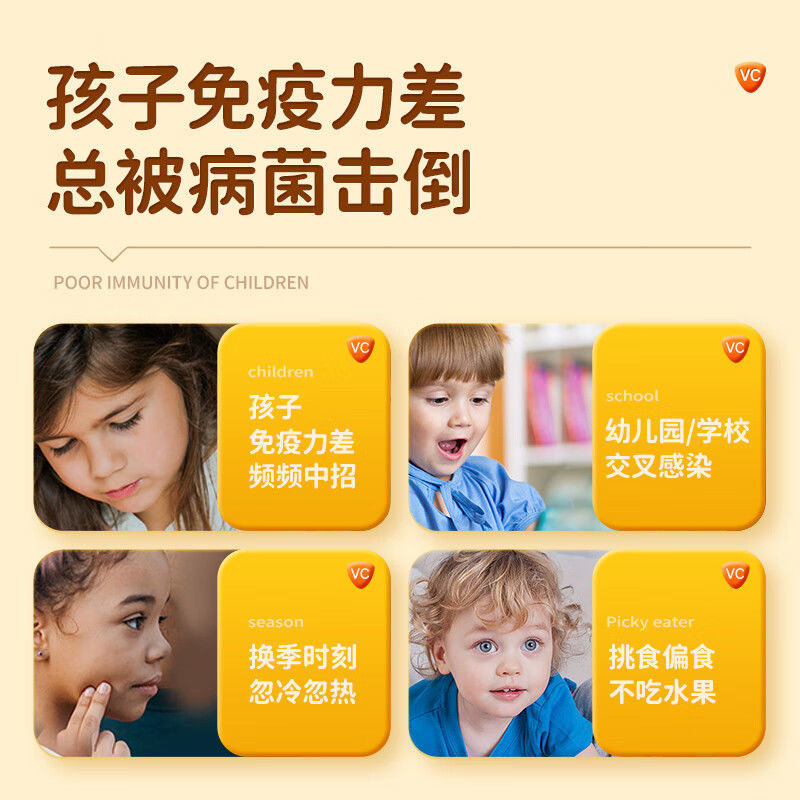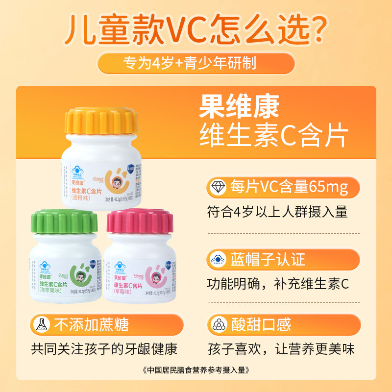 果维康儿童维生素C青少年成长VC专用换季强免疫力果味vc咀嚼含片