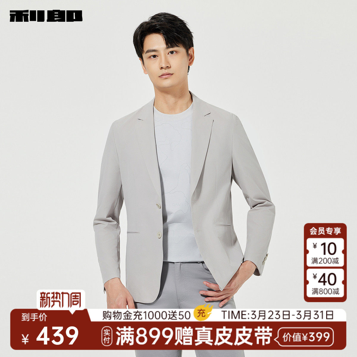 【薄款】利郎官方 休闲西服男士商务纯色男装春季新款西装外套男