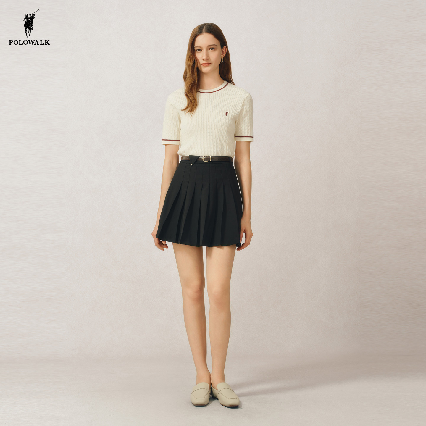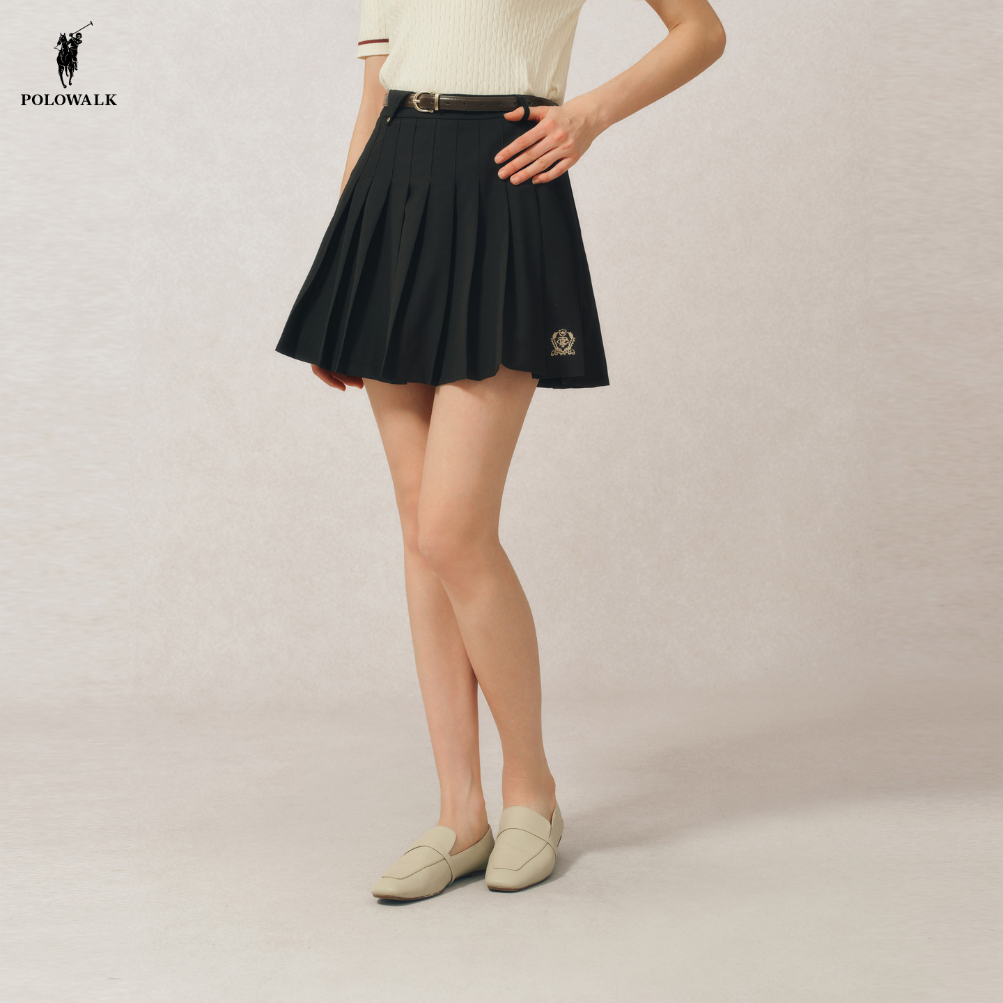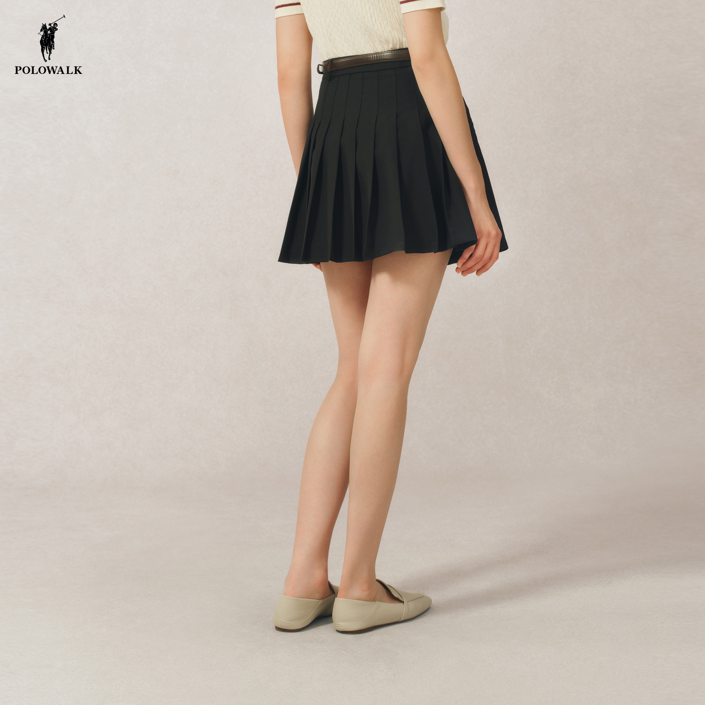 POLOWALK女士半裙2026春夏裙裤新款复古A版百褶裙学院风裙子女装