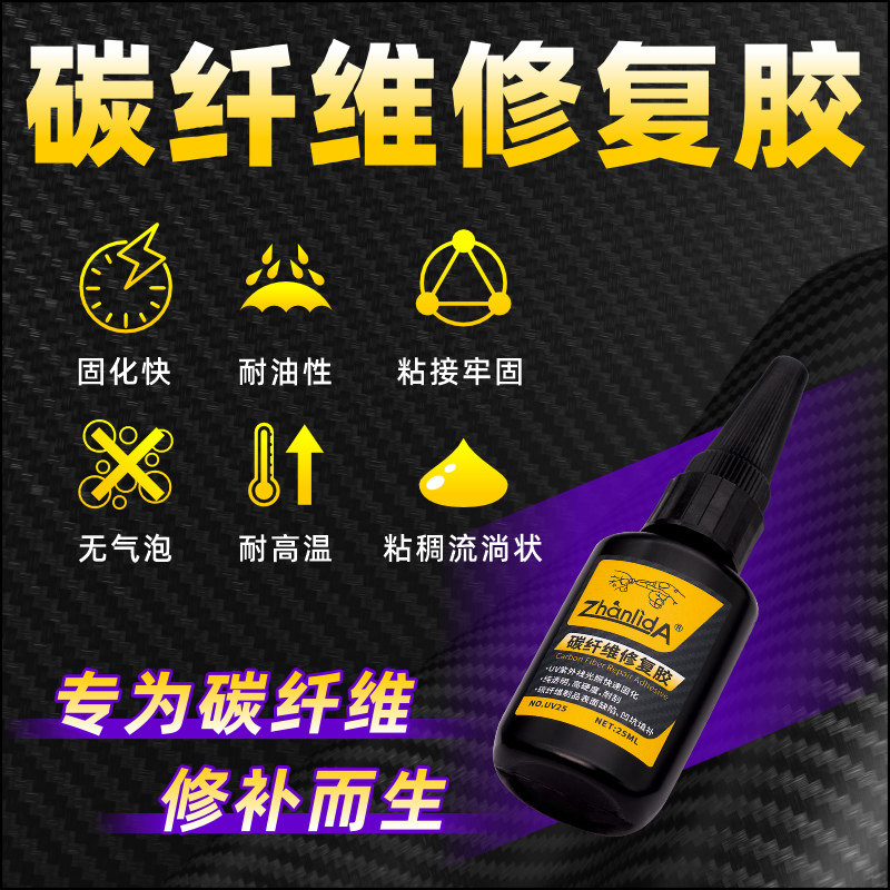 碳纤维修复胶水专用汽车改装件头盔摩托车羽毛球拍碳板划痕修复液UV胶自行车表面机盖车架改装件粘合面修补液