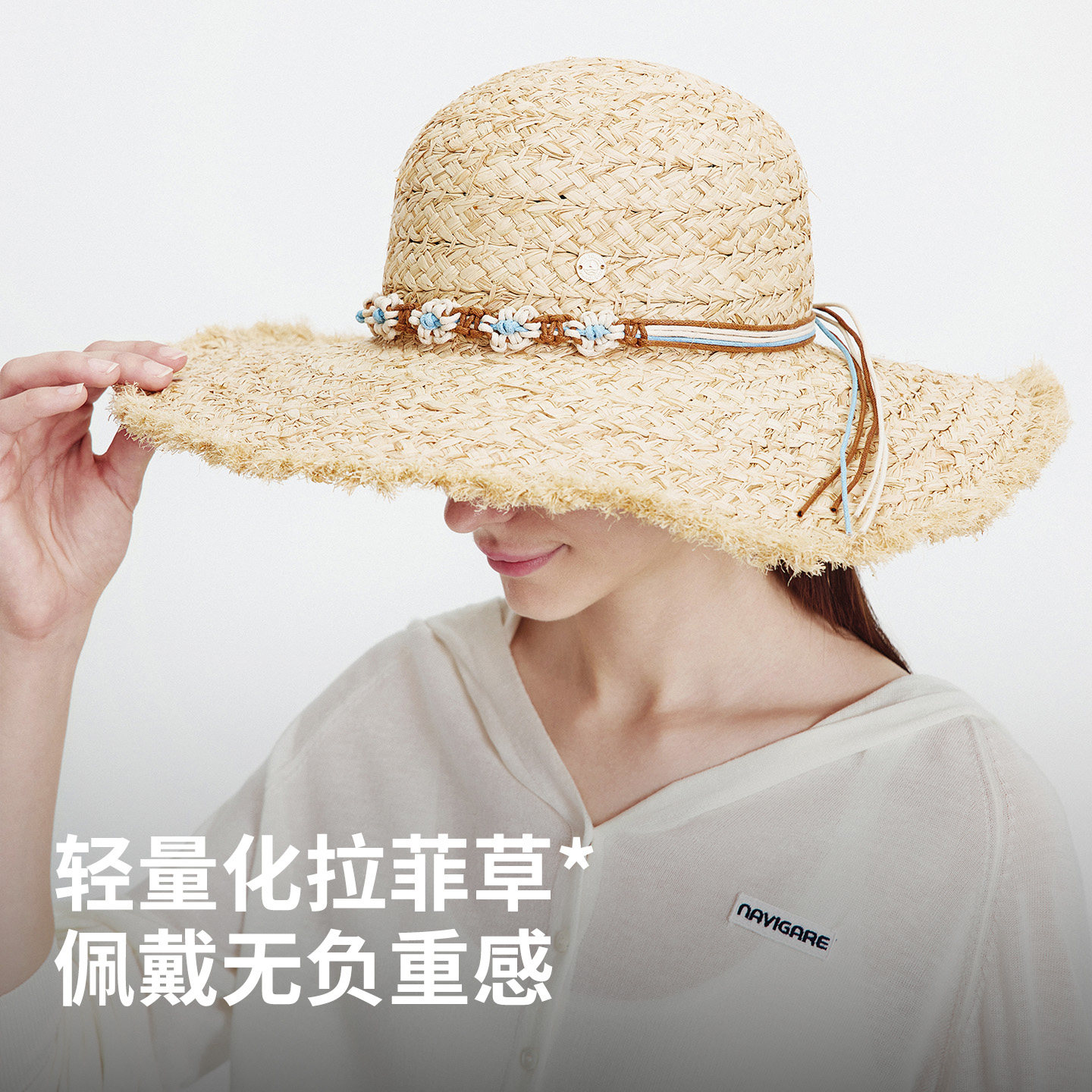 Navigare意大利小帆船休闲编织草帽女士2026春夏新款显脸小帽子