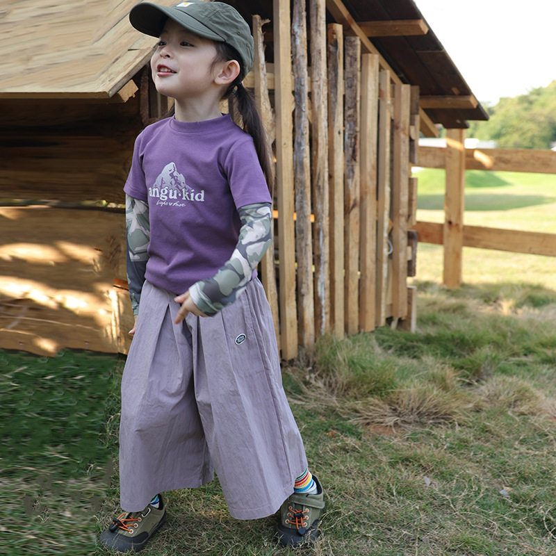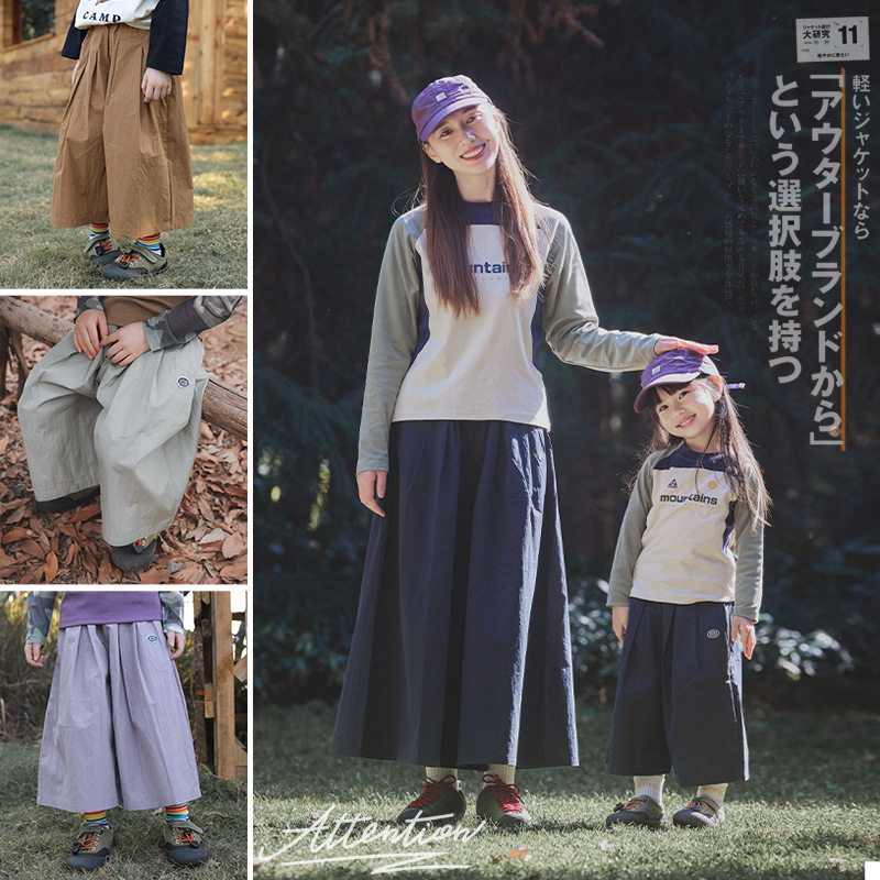 山系女童宽松阔腿长裤母女亲子装2025春夏户外儿童运动休闲直筒裤