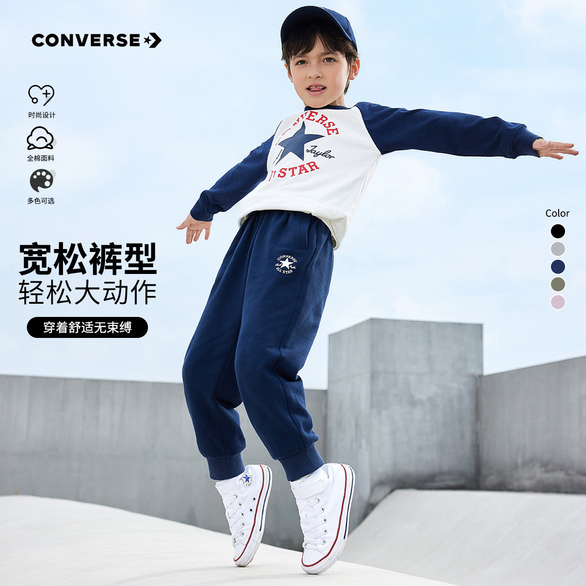匡威儿童装男童裤子女童纯棉长裤2025秋冬新款中大童休闲裤运动裤