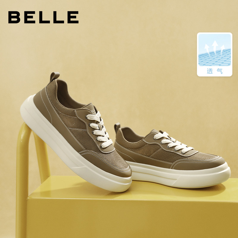 百丽男鞋网面透气增高休闲小白板鞋夏季男士款大头面包布鞋8YF01D