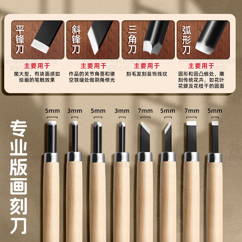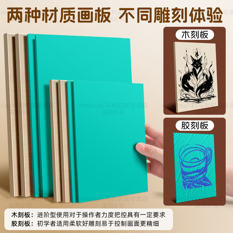 马利版画工具套装木板版画工具全套版画材料油墨刻刀板画木刻板版画刀画套装初学者版画胶板拓印版画儿童专用