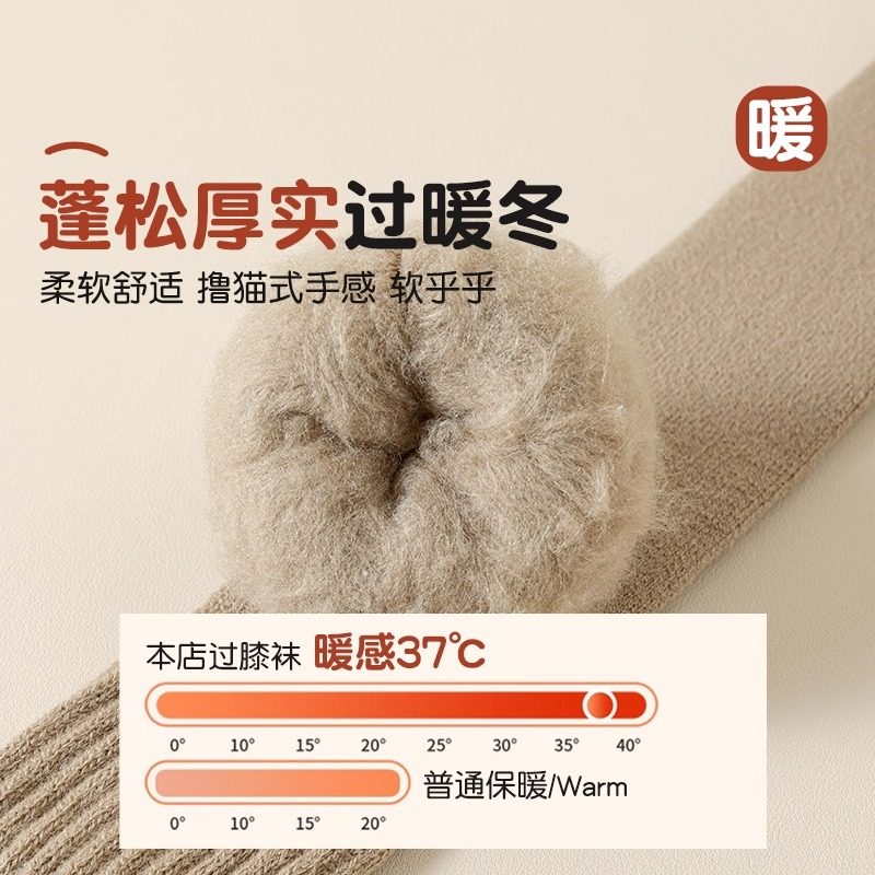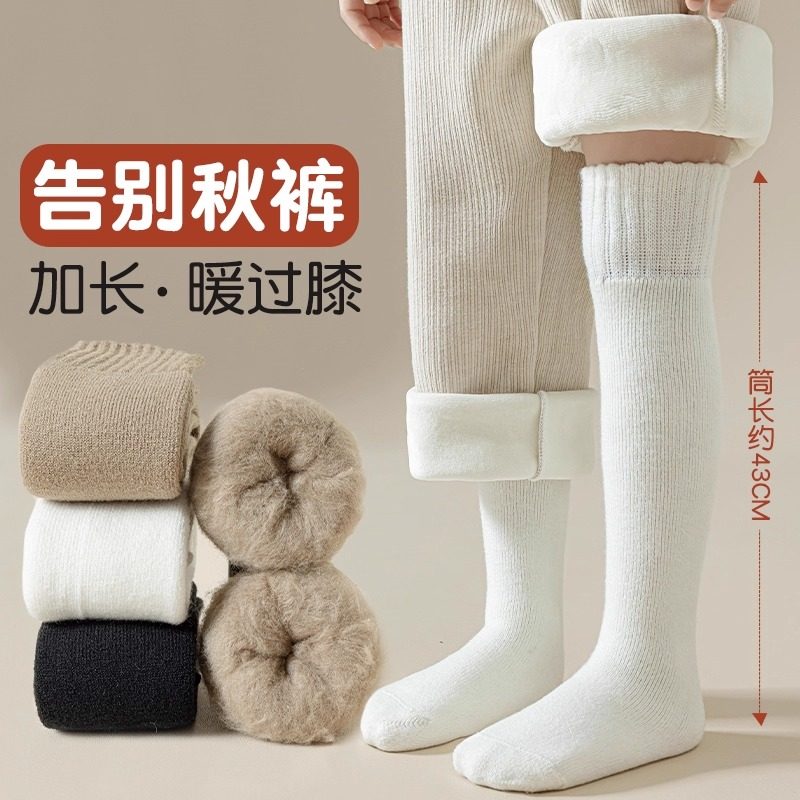 女童长筒袜冬季加绒加厚过膝袜儿童保暖护膝高筒袜防下滑厚绒白色