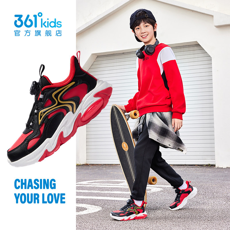 361度童鞋男童休闲鞋冬季新款皮面旋钮防水中大童运动鞋青少年鞋