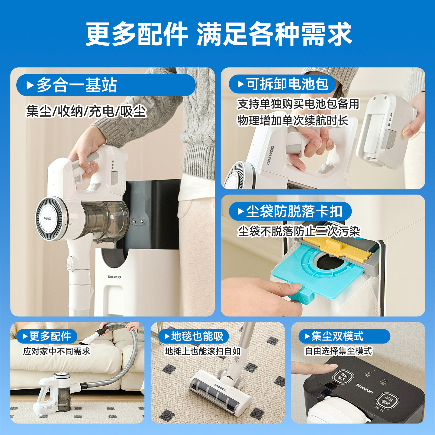 DAEWOO大宇·魔术师无线自集尘基站吸尘器家用大吸力手持吸猫毛