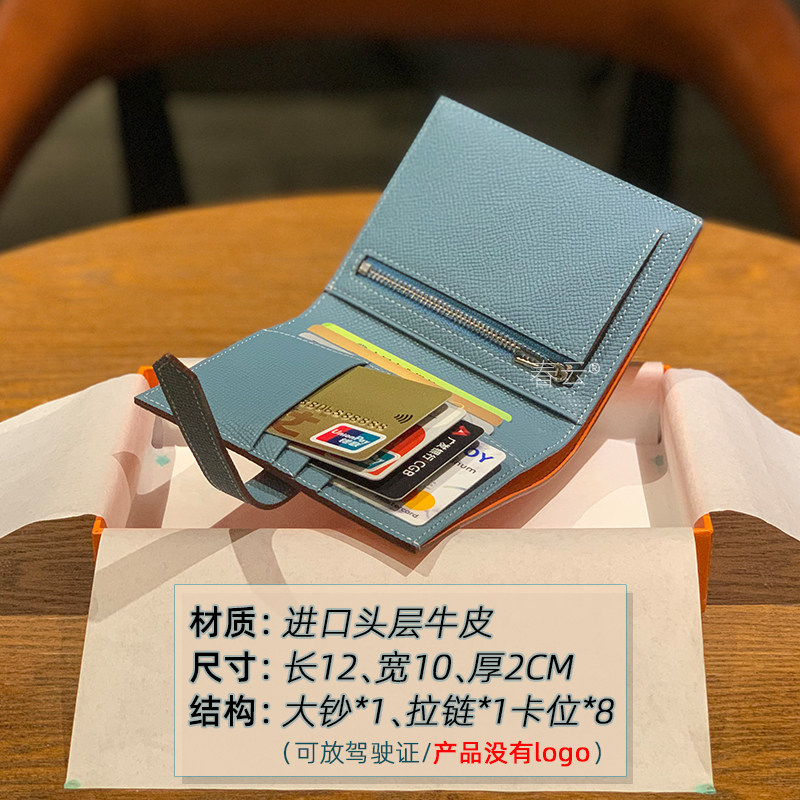 爱马女仕钱包女短款真皮EP拼色高端钱夹撞色新款H扣高级感新款