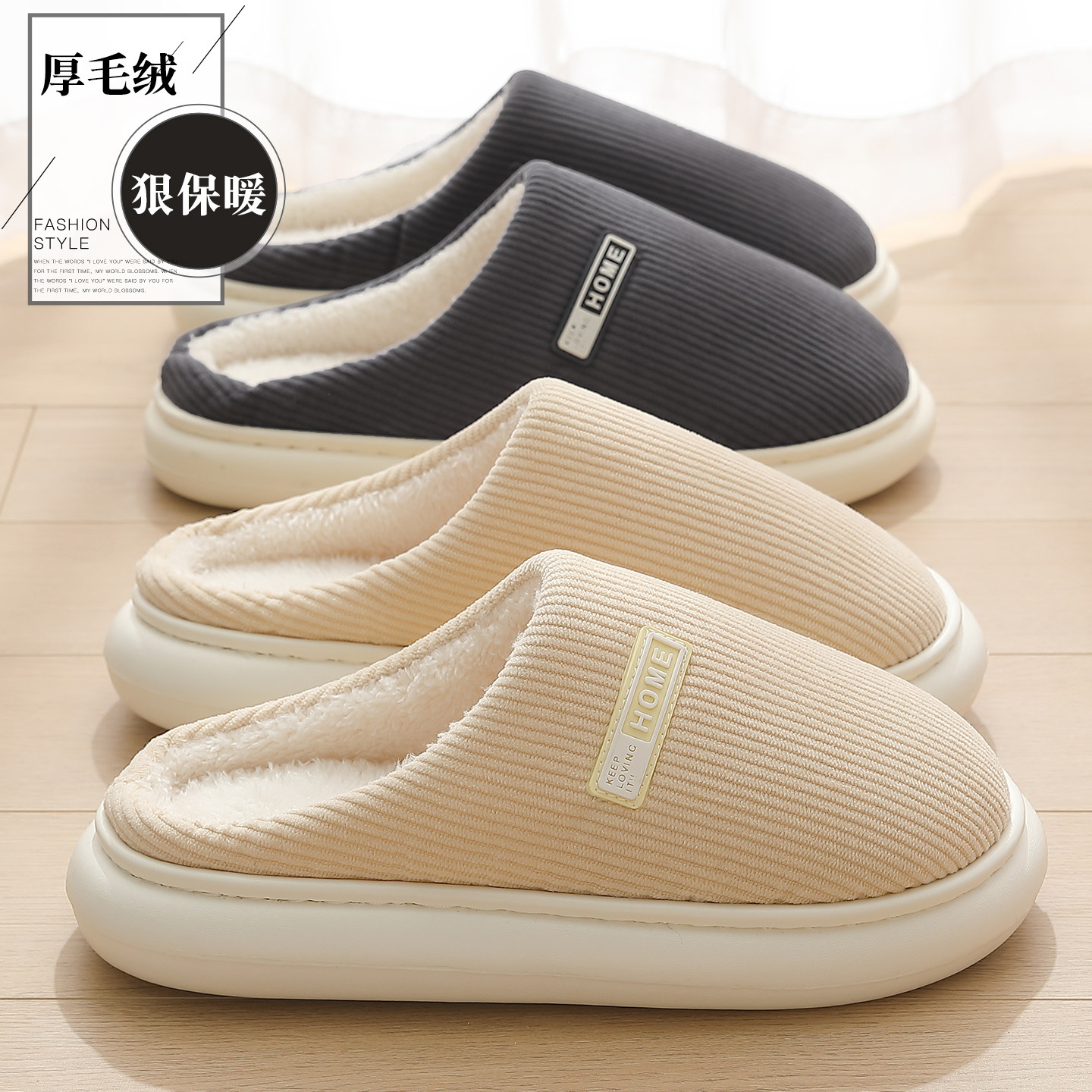 红豆踩屎感棉拖鞋女士秋冬季室内家居2025新款毛绒保暖情侣棉拖男