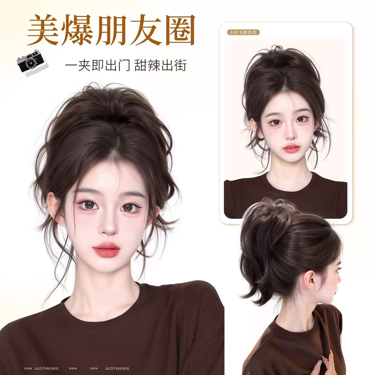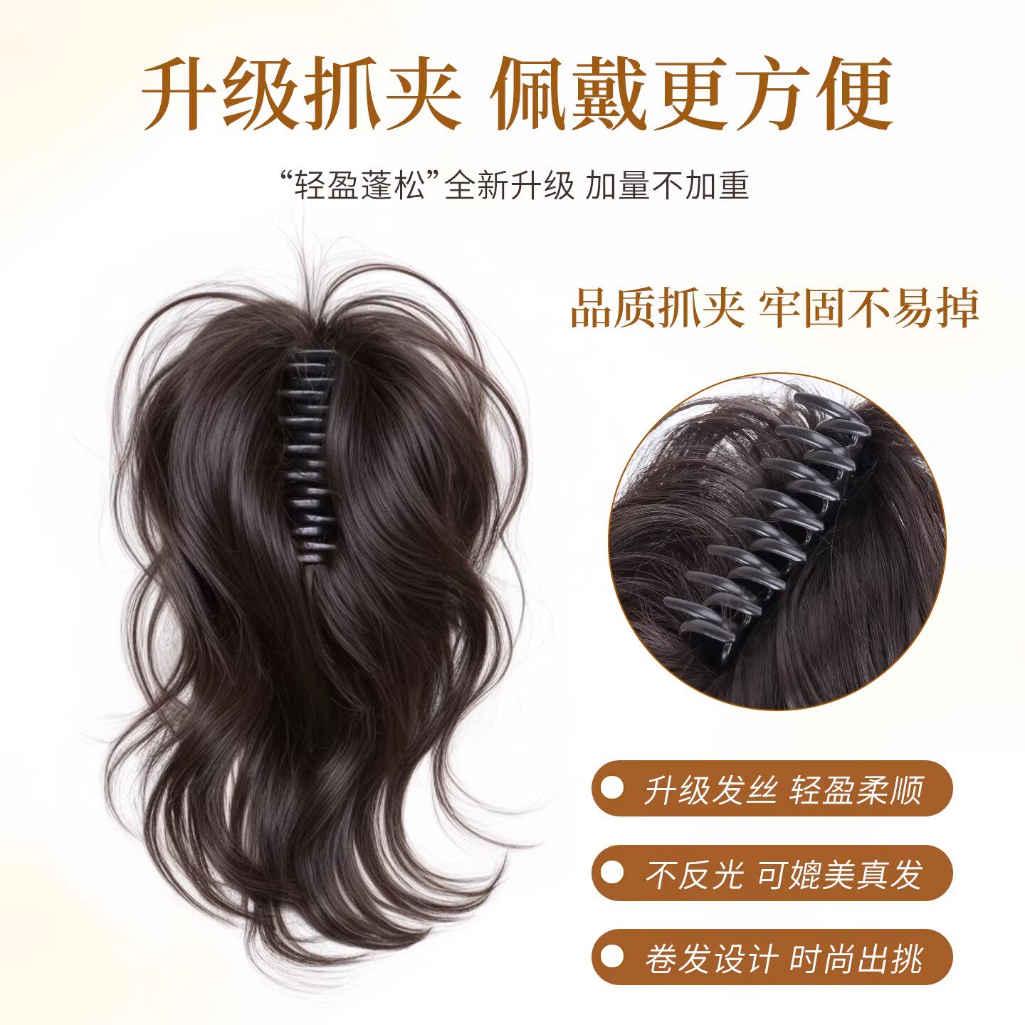 人鱼卷马尾高颅顶增发量假发抓夹辣妹御姐蓬松短马尾喷泉假发辫子