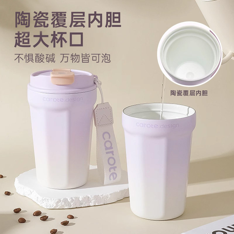 卡罗特保温杯陶瓷覆层内胆咖啡杯女生便携随行不锈钢水杯保冷杯子