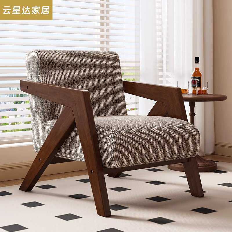 中古风理查德椅客厅单人沙发椅设计师阳台法式复古休闲实木沙发椅